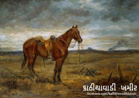 ખમીરવંત ઘોડાં ખરતાડે ને, પડઘમની જ્યાં થાપ પડી,